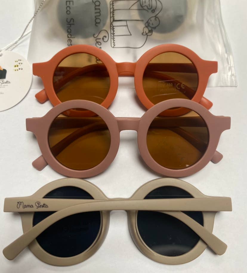 Polarized UV lenses for extra protection. These sturdy glasses are made from 100% recycled ocean plastic. Soft crayon style colour palette with a matte finish to compliment those outfits on the days out in the city and on the beach. They come with their own personalised Mama Siesta pouch case.