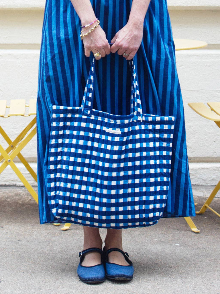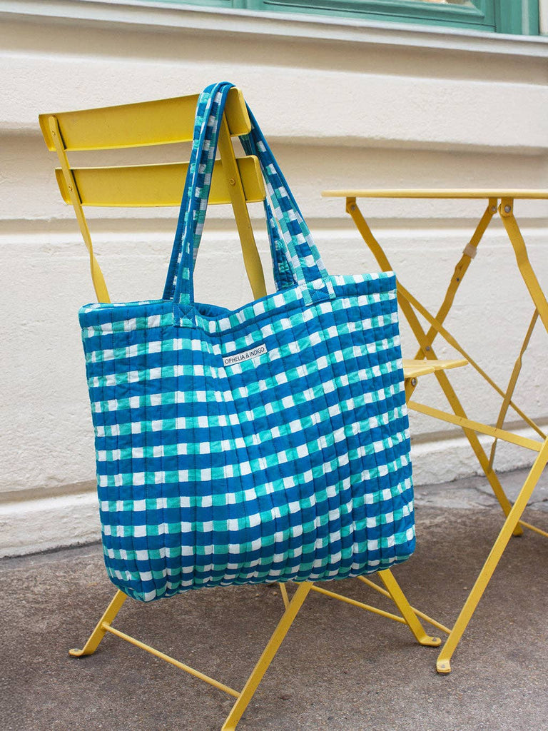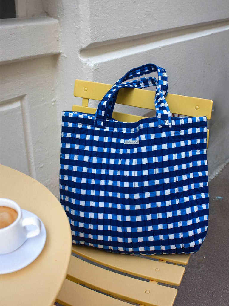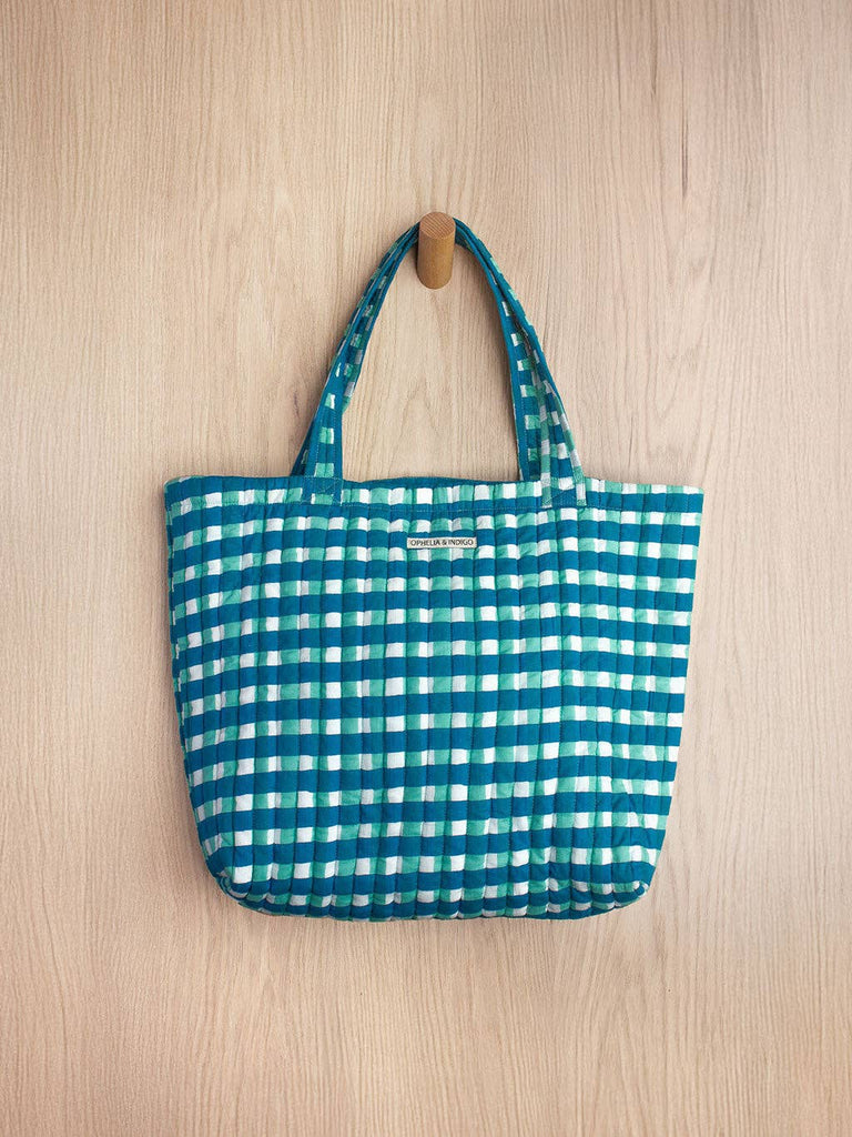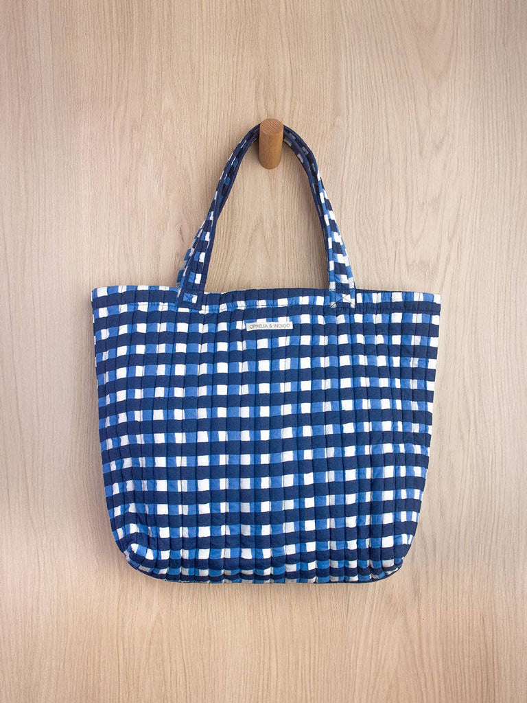 Ophelia & Indigo - O&I Everyday Tote: Blue Gingham Block Print