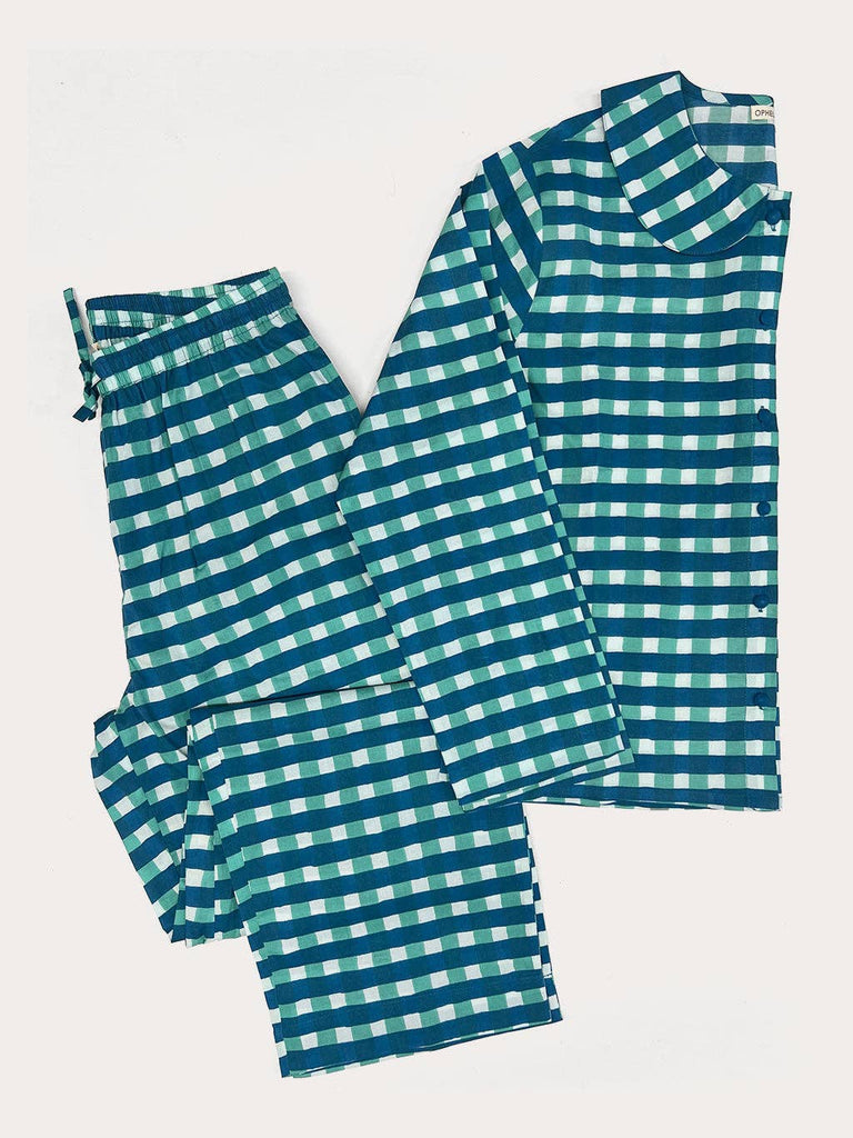 / Ophelia & Indigo - Spring Pajamas: Blue Gingham Block Print / XS