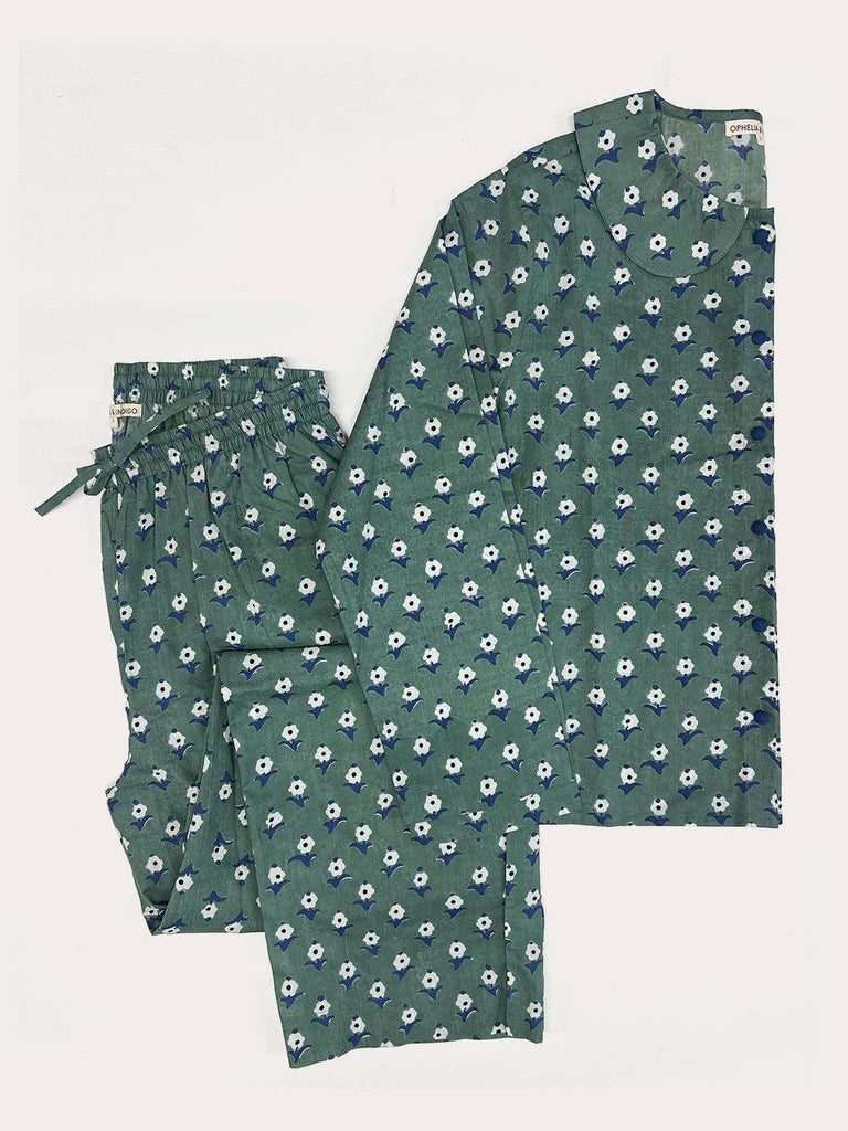 / Ophelia & Indigo - Spring Pajamas: Green Gingham Block Print / L