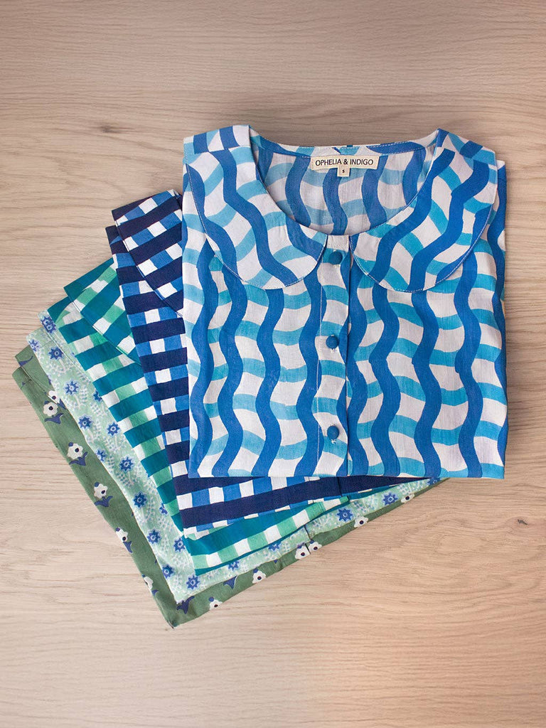 / Ophelia & Indigo - Spring Pajamas: Green Gingham Block Print / XS